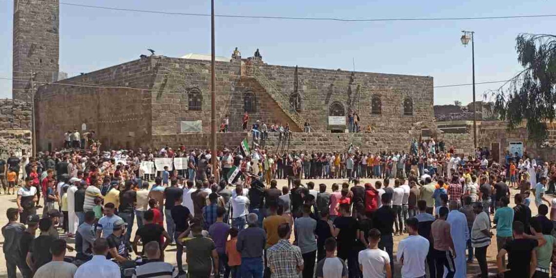 ومع استمرار الاحتجاجات الشعبية لليوم السابع على التوالي في مناطق متفرقة من محافظتي السويداء ودرعا جنوب البلاد؛ خرجت الجمعة، مظاهرة شعبية في شارع تل أبيض التجاري وسط مدينة الرقة شارك فيها المئات من أبناء المدينة، فيما خرجت مظاهرات حاشدة في بلدات ومدن الحصان والعزبة بريف دير الزور الشرقي، في حين نظمت شخصيات سياسية وناشطون أكراد تجمعاً أمام مقر الأمم المتحدة بمدينة القامشلي، للتضامن مع المتظاهرين في السويداء ودرعا.