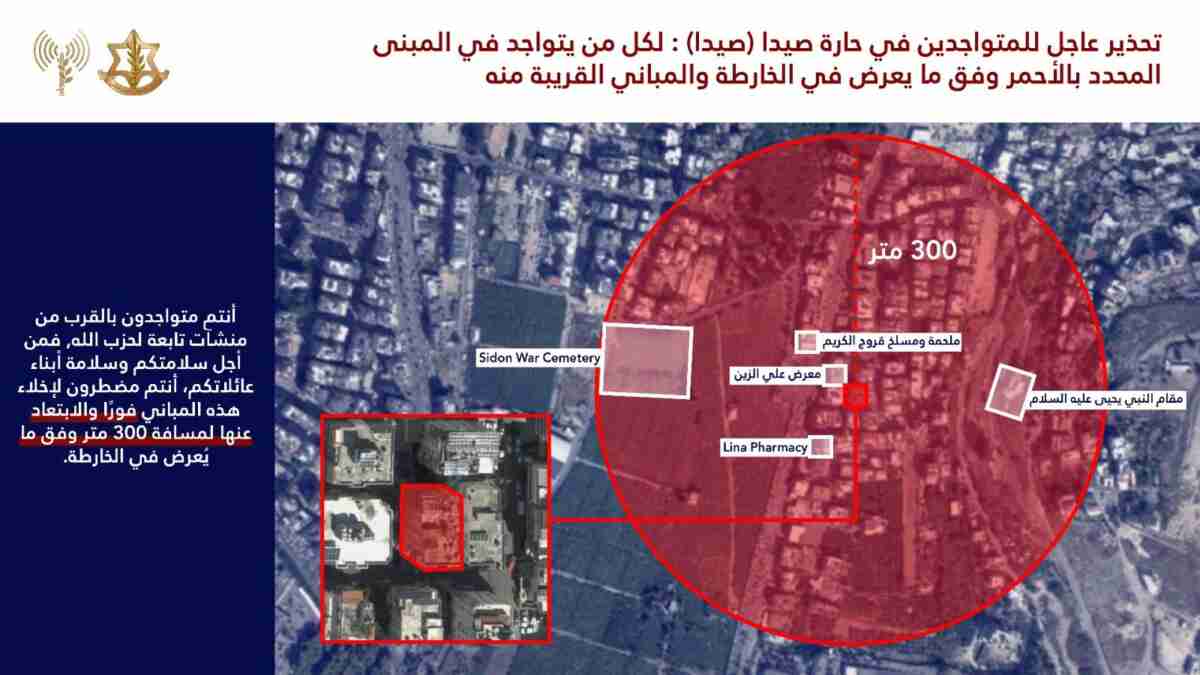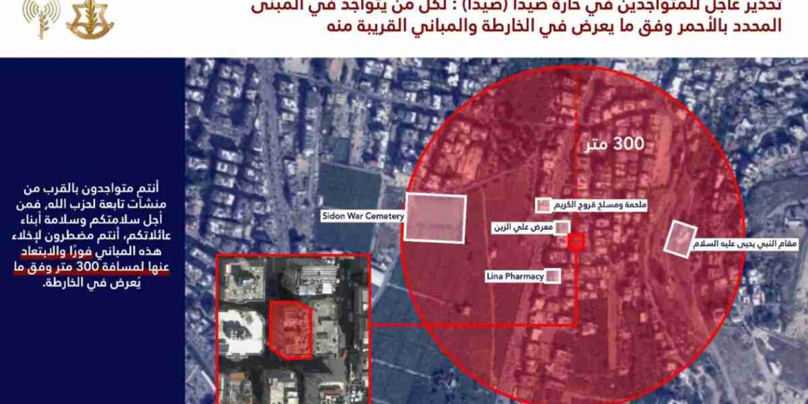 الجيش الإسرائيلي يصدر إنذارا لسكان مدينة صيدا