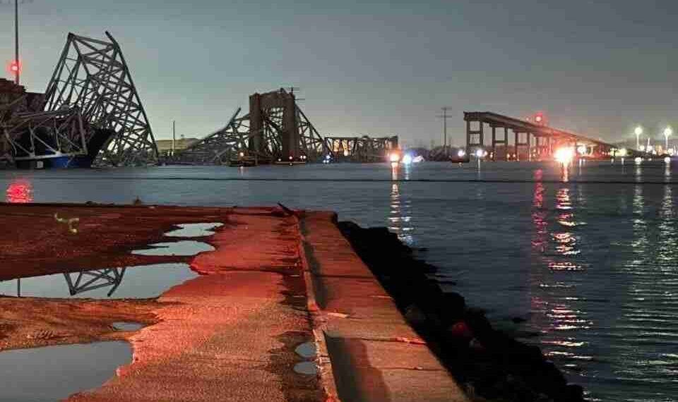 The Francis Scott Key Bridge in Baltimore, Maryland which crosses the Patapsco River has reportedly Collapsed within the last few minutes after being Struck by a Large Container Ship; a Mass Casualty Incident has been Declared with over a Dozen Cars and many Individuals said to… pic.twitter.com/SsPMU8Mjph