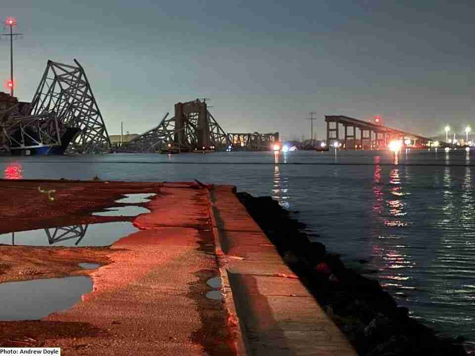 The Francis Scott Key Bridge in Baltimore, Maryland which crosses the Patapsco River has reportedly Collapsed within the last few minutes after being Struck by a Large Container Ship; a Mass Casualty Incident has been Declared with over a Dozen Cars and many Individuals said to… pic.twitter.com/SsPMU8Mjph