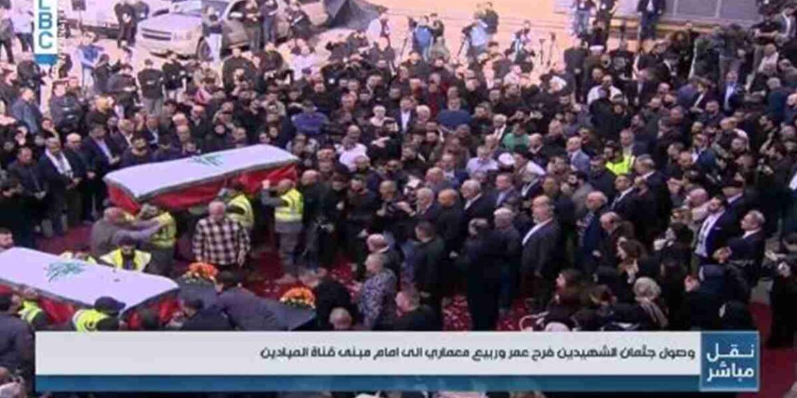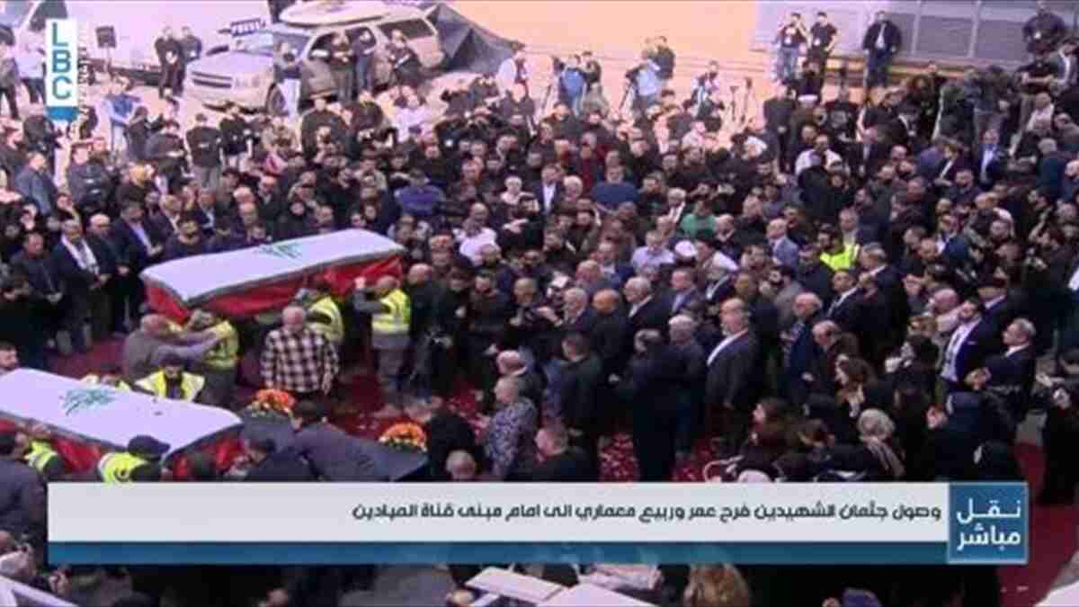 لبنان يودع فرح عمر و ربيع المعماري بعد أن اغتالتهما اسرائيل يوم أمس اثناء عملهما مع قناة الميادين في الجنوب . #طوفان_الأقصى pic.twitter.com/A71OugXt8b