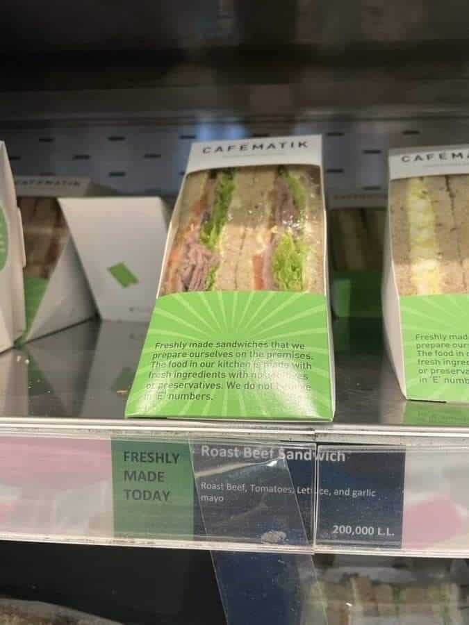 انتشرت صورة على مواقع التواصل الاجتماعي تظهر فيها سعر السندويش ب 200000 ل. ل. في “Duty-free ” في مطار بيروت. وعليه فإن سعر “السندويش الواحد ” في “Duty-free ” يوازي ثلث الحدّ الأدنى للأجور في لبنان.
