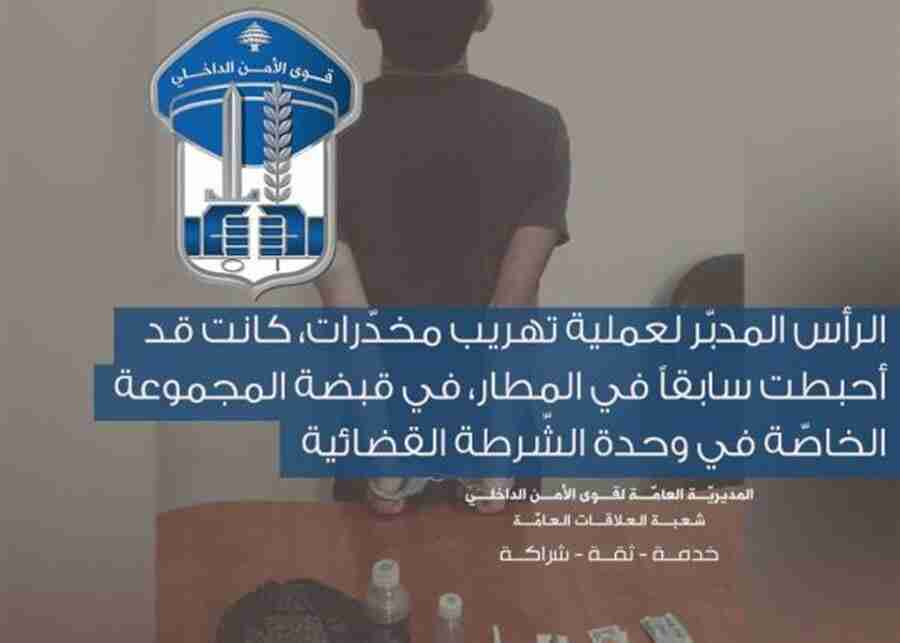 صدرعن المديرية العامّة لقوى الأمن الدّاخلي ـ شعبة العلاقات العامّ البلاغ التّالي:في إطار العمل الذي تقوم به وحدة الشرطة القضائية لمكافحة جميع أنواع الجرائم، وبعد احباط عملية تهريب كمية من المخدرات عبر مطار رفيق الحريري الدولي بواسطة إحدى المسافرات التي كانت تخبّئ /2/ كلغ من مادة حشيشة الكيف في جسمها.من خلال التحريات المكثّفة التي أجراها مكتب مكافحة المخدرات المركزي، تم تحديد هوية الرأس المدبر لعملية التهريب وهو المدعو: