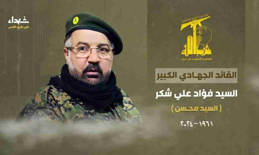فؤاد شكر (السيد محسن) الذي نزفه شهيداً كبيراً على طريق القدس، تُقَدِّمُهُ مقاومتنا عنواناً لالتزامها الحاسم وعزمها الراسخ بمواصلة الجهاد حتى تحرير الأرض والمقدسات والإنسان من ظلم ووحشية هذا الكيان الغاصب والمجرم والقاتل، ورمزاً من رموزها الكبار من صانعي انتصاراتها وقوتها واقتدارها ومن قادة ميادينها الذين ما تركوا الجهاد حتى النَّفْسِ الأخير”.