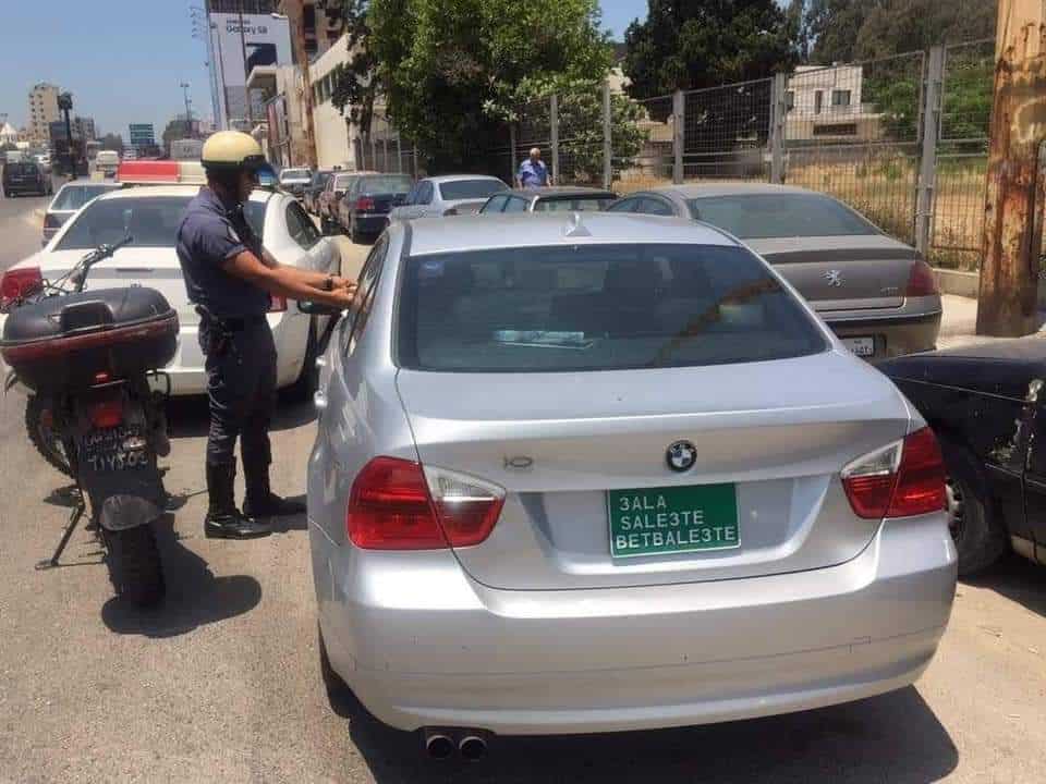 حجزت مفرزة سير الجديدة سيارة لوضعها لوحة كُتِب عليها "على صلعتي بتبلعطي" وهو ما يعتبر مخالفة للنموذج وعلى أساسه تم تنظيم محضر من الفئة الخامسة بحق صاحبها أي تتراوح الغرامة بين مليون و3 مليون